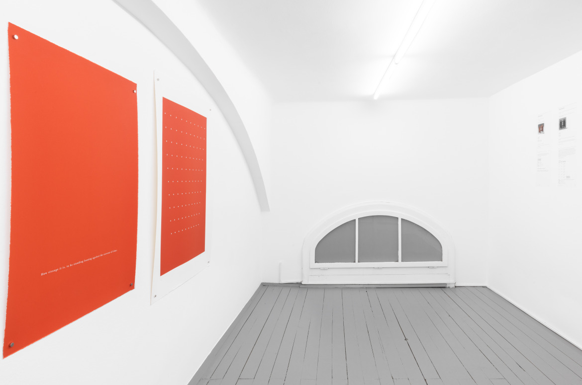 In 2001, Tess Jaray collaborated with German author W. G. Sebald on a series of silkscreen prints. The resulting book and set of prints were the first public exposure of Sebald’s poetry. Himself an emigrant from Germany to the UK, Sebald’s writings often refer to absence, alienation and exile, with the author frequently using trains and train stations as metaphors. Due to their close friendship, Sebald was very familiar with the Jaray family history, and the exhibited quote reads as a poetic yet precise reflection on contemporary society.
