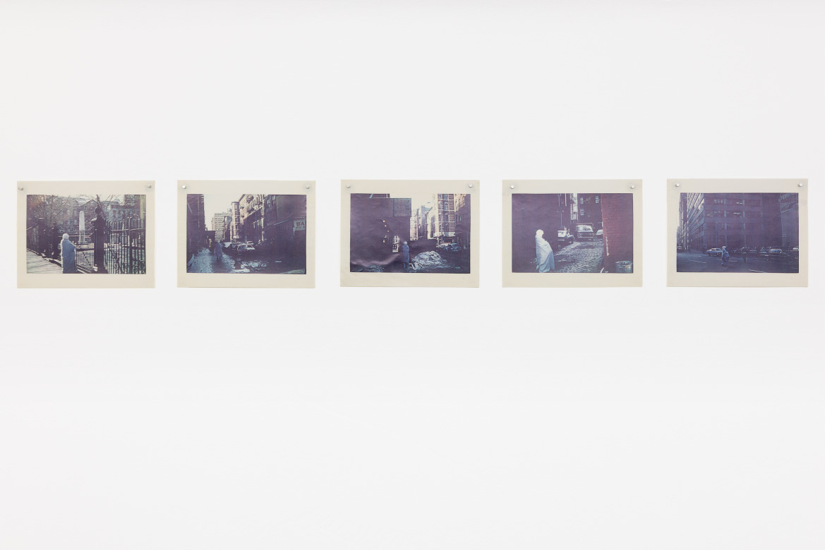 In 1983, Kazuko Miyamoto, since 1974 a member of the women’s art collective A.I.R., walked around Lower Manhattan from A.I.R. gallery to the alternative performance art space Franklin Furnace, dressed in a blue blanket. Her head was covered with what appeared to be a white plastic bag. Entitled Waiting for the Carnival, the fragmented remaining set of photocopies documenting this performative walk is on display. Although Miyamoto’s walk had a clear beginning and end, it also represents the many marginalised individuals walking seemingly lost through the streets of Manhattan. Miyamoto’s performance was in stark contrast to the glitzy, Wall Street-fuelled art world of 1980s New York. She pays tribute to an alternative vision of art that is less capital-driven, where collaboration, collectivity and community take precedence over hyper-individuality and capitalist obscenity. At the same time, she raises awareness of issues such as poverty, homelessness and displacement.