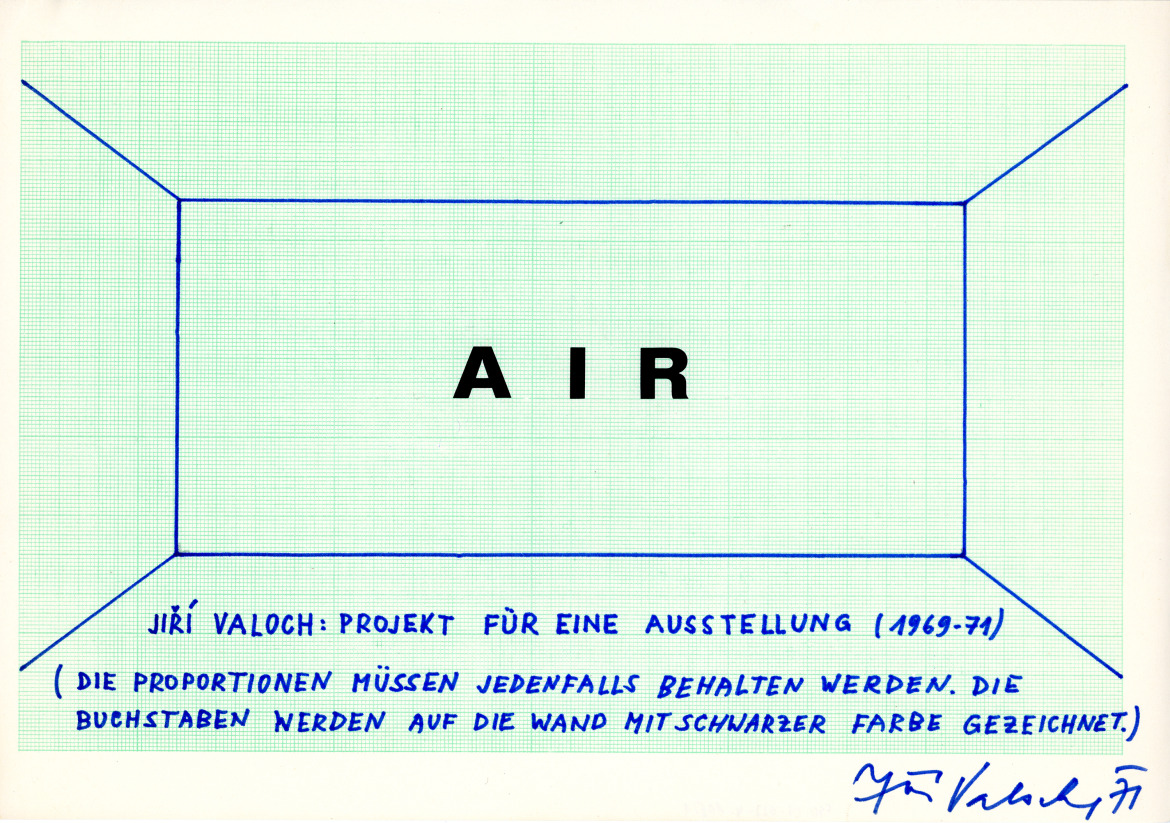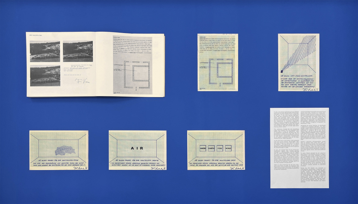 The exhibition Projekt für eine Ausstellung (1969-1971) presents the five proposals that Valoch sent to Groh for publication. They all emphasise conceptual thinking and the perception of work as an idea that can be sent by post and realised repeatedly according to the artist’s instructions. Furthermore, all of Valoch’s proposals touch on the basic elements of air, water and earth.