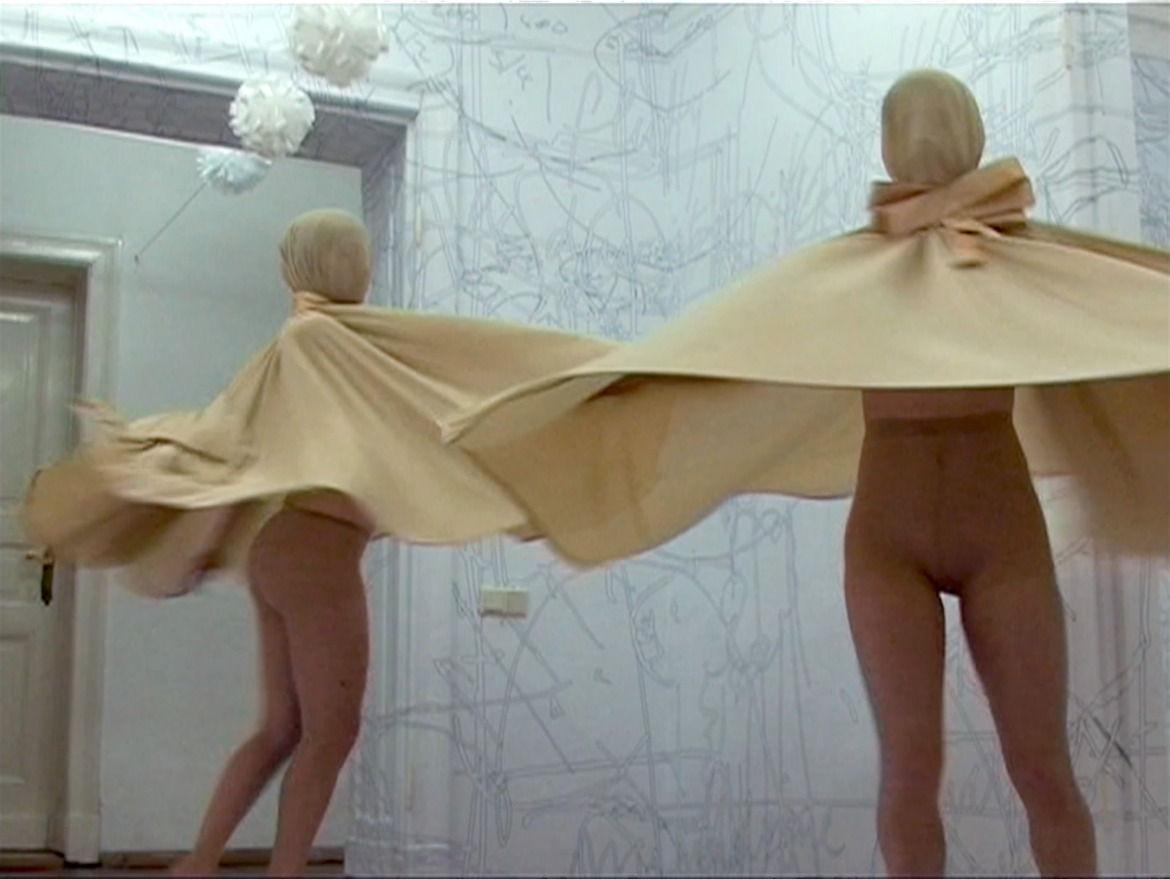 S.M. van der Linden, Fluffy Minimalism, 2007, video, 4:41 min (Performance documentation with with Ursula Döbereiner, Laura Mars Gallery, Berlin)