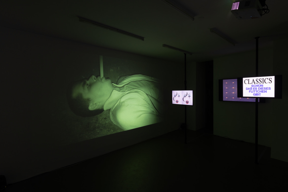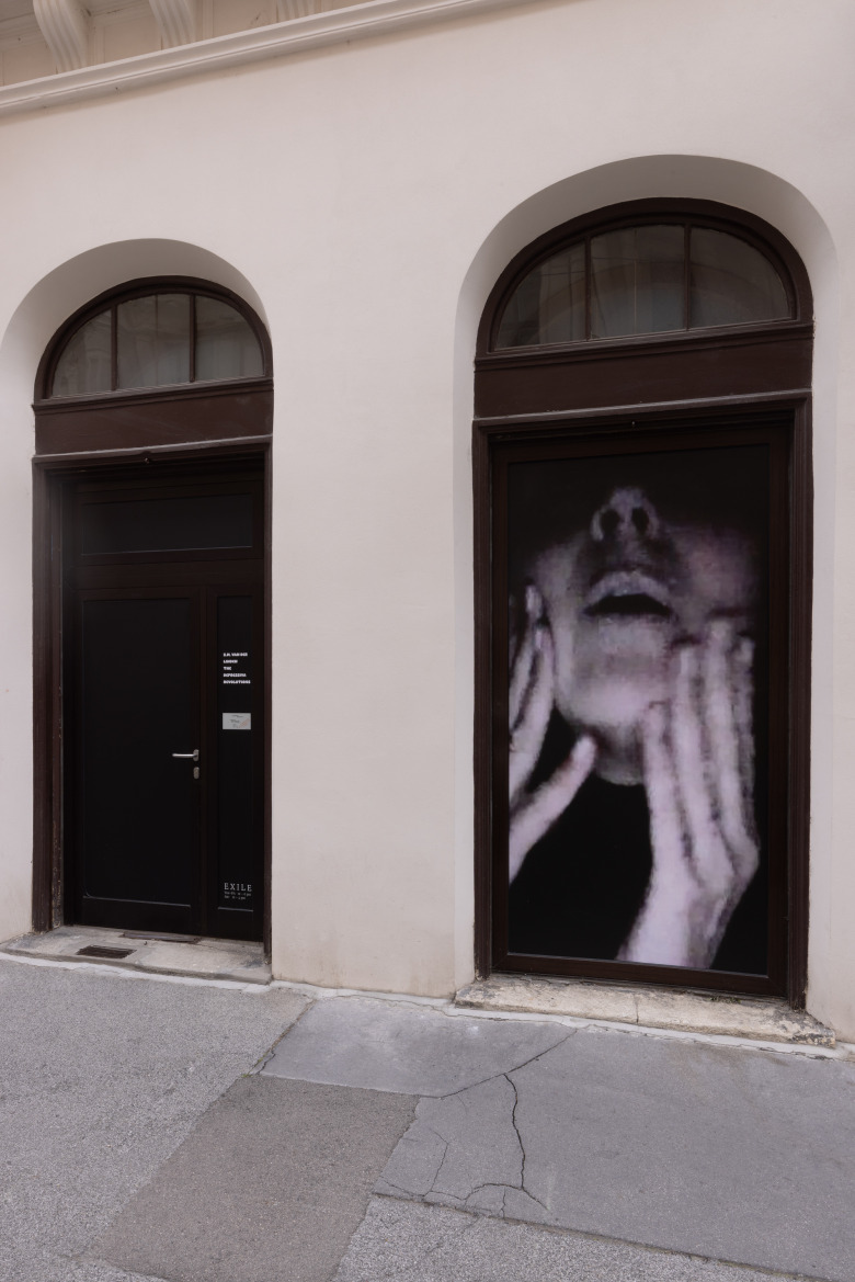 S.M. van der Linden, The Depressiva Revolutions, Installation view, EXILE, 2025 (video-still from Depressiva (Skype), 2011, video, 09:22 min)